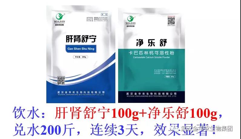 2、【晚上控水】,集中4小時喝完,通腎排毒,降溫解暑,排毒護肝,退燒抗應激:飲水:肝腎舒寧100克+凈樂舒100克,兌水200斤,連續(xù)3天,效果顯著!