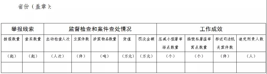 嚴(yán)厲打擊生豬屠宰違法行為專項(xiàng)行動(dòng)情況統(tǒng)計(jì)表