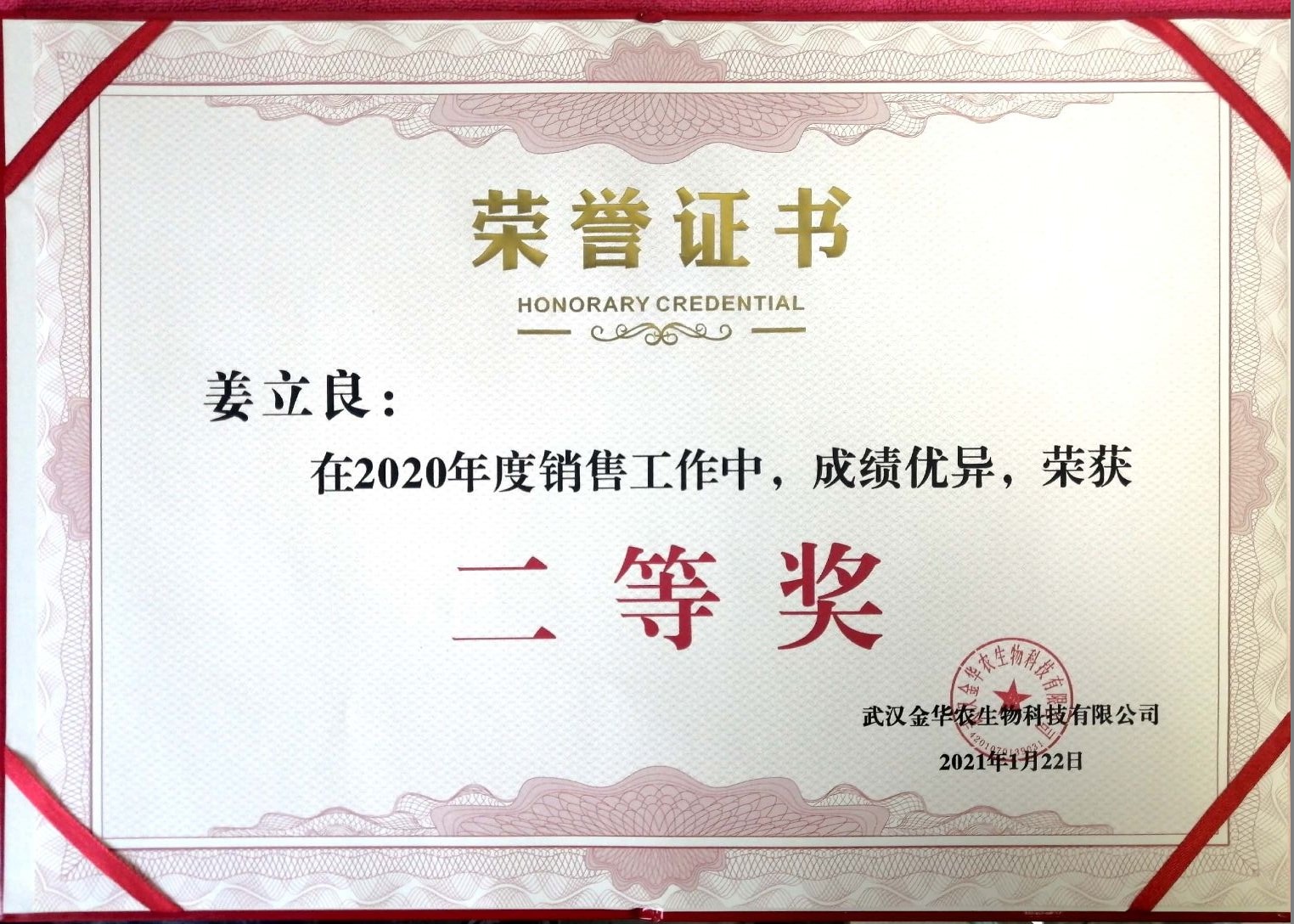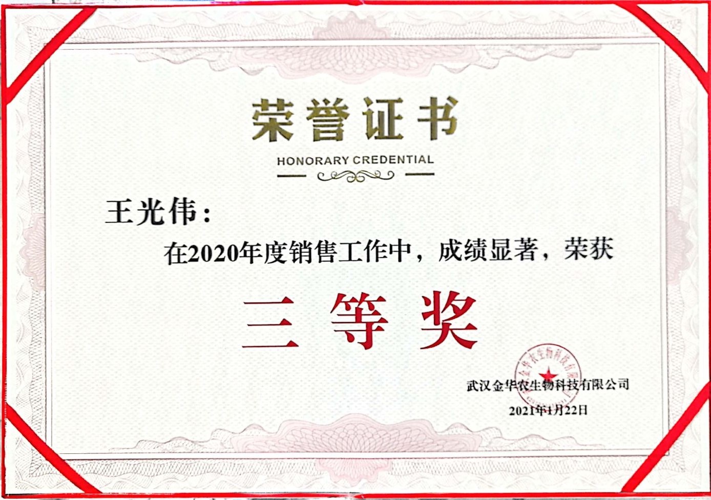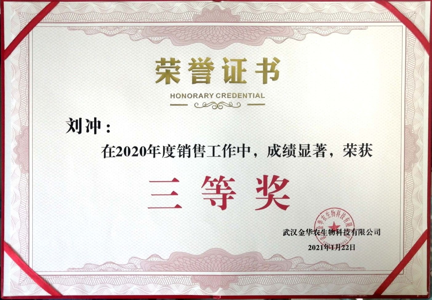 武漢金華農(nóng)生物2020年度銷售業(yè)績(jī)優(yōu)秀表彰獲獎(jiǎng)名單