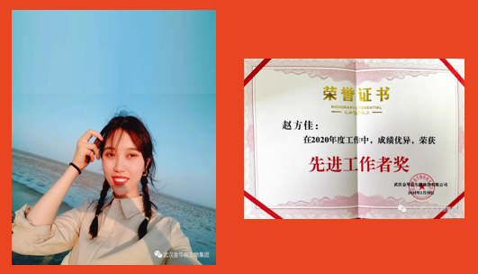 ? ? 趙方佳在2020年企劃工作中,篤信好學(xué)、思辨創(chuàng)新,圓滿完成公司各項(xiàng)宣傳策劃及活動(dòng)組織工作。2年來,協(xié)助市場(chǎng)部、技術(shù)部,制作各類優(yōu)質(zhì)課件近百件、配合辦公室、營銷部組織各類活動(dòng)近百場(chǎng),她以高效傳播服務(wù),樹公司品牌形象,對(duì)公司發(fā)展做出突出貢獻(xiàn),被評(píng)為“先進(jìn)工作者”。她的敬業(yè)和擔(dān)當(dāng)精神值得全體武漢金華農(nóng)家人學(xué)習(xí)!