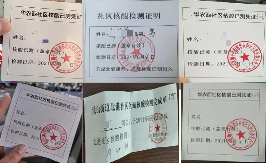 武漢金華農(nóng)生物員工核酸檢測憑證(部分)
