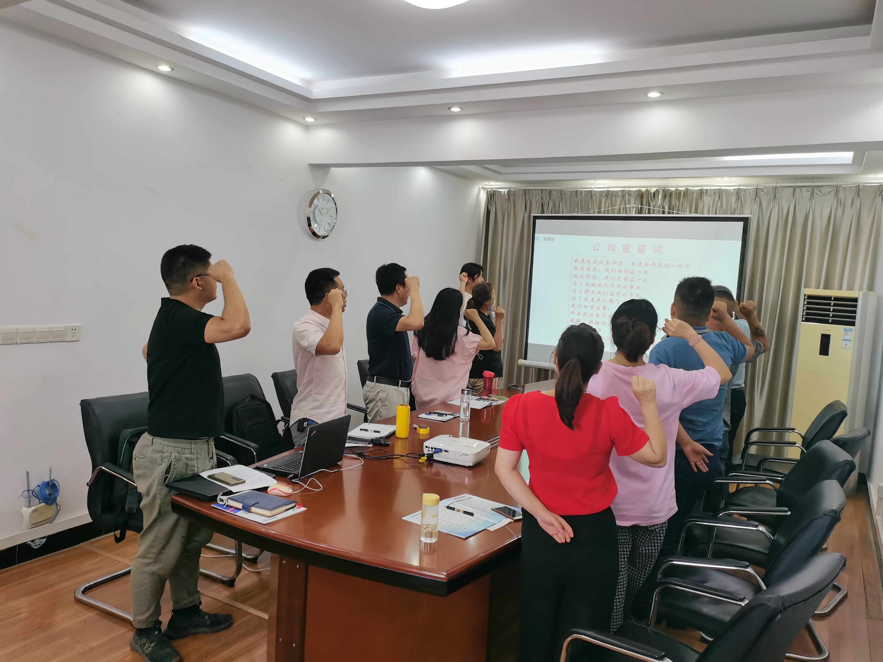 最后,全體員工右手舉拳,進行了莊嚴宣誓。發(fā)自肺腑地喊出“我來自武漢金華農(nóng),我是金華農(nóng)的一份子。因為追求,我們相約在一起。因為信念,我們打拼在一處。為了成就我們共同的事業(yè),為了捍衛(wèi)我們獲得的榮光,為了追逐我們騰飛的夢想,我們鄭重宣誓作為武漢金華農(nóng)的一員,我將團結(jié)向上,勇攀高峰,齊心協(xié)力,再創(chuàng)輝煌出色完成公司2021年的銷售任務!”的誓言。