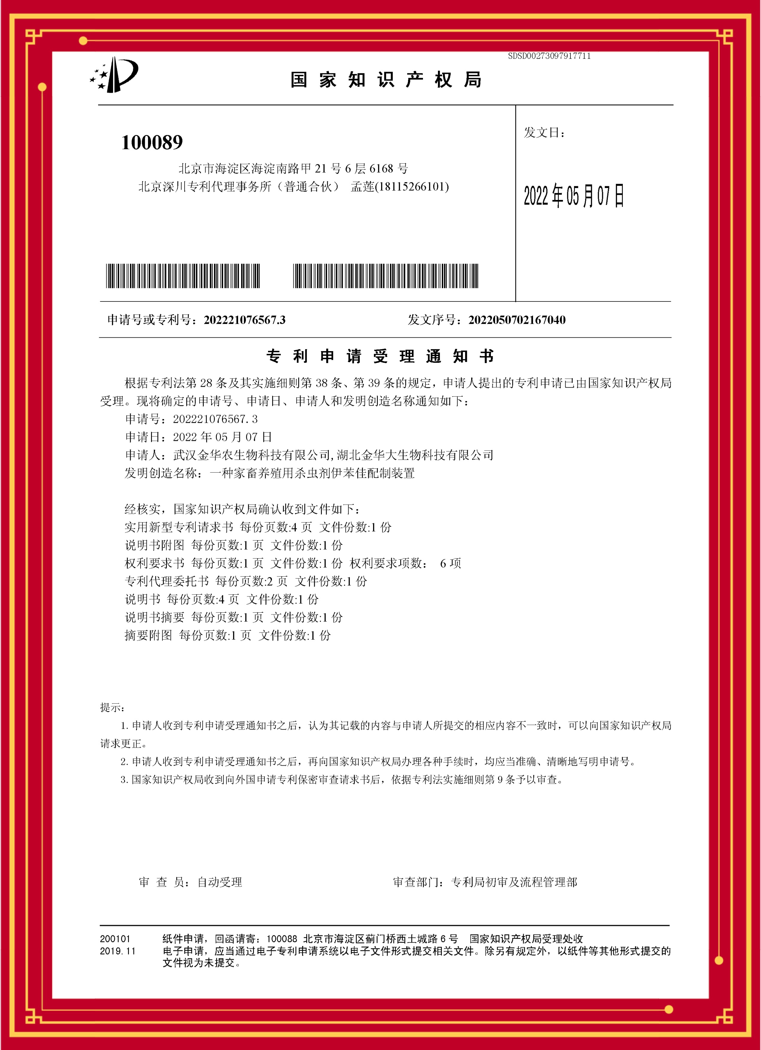 科技發(fā)明專利(黃金多維C):專利號(hào)—202221071292.4