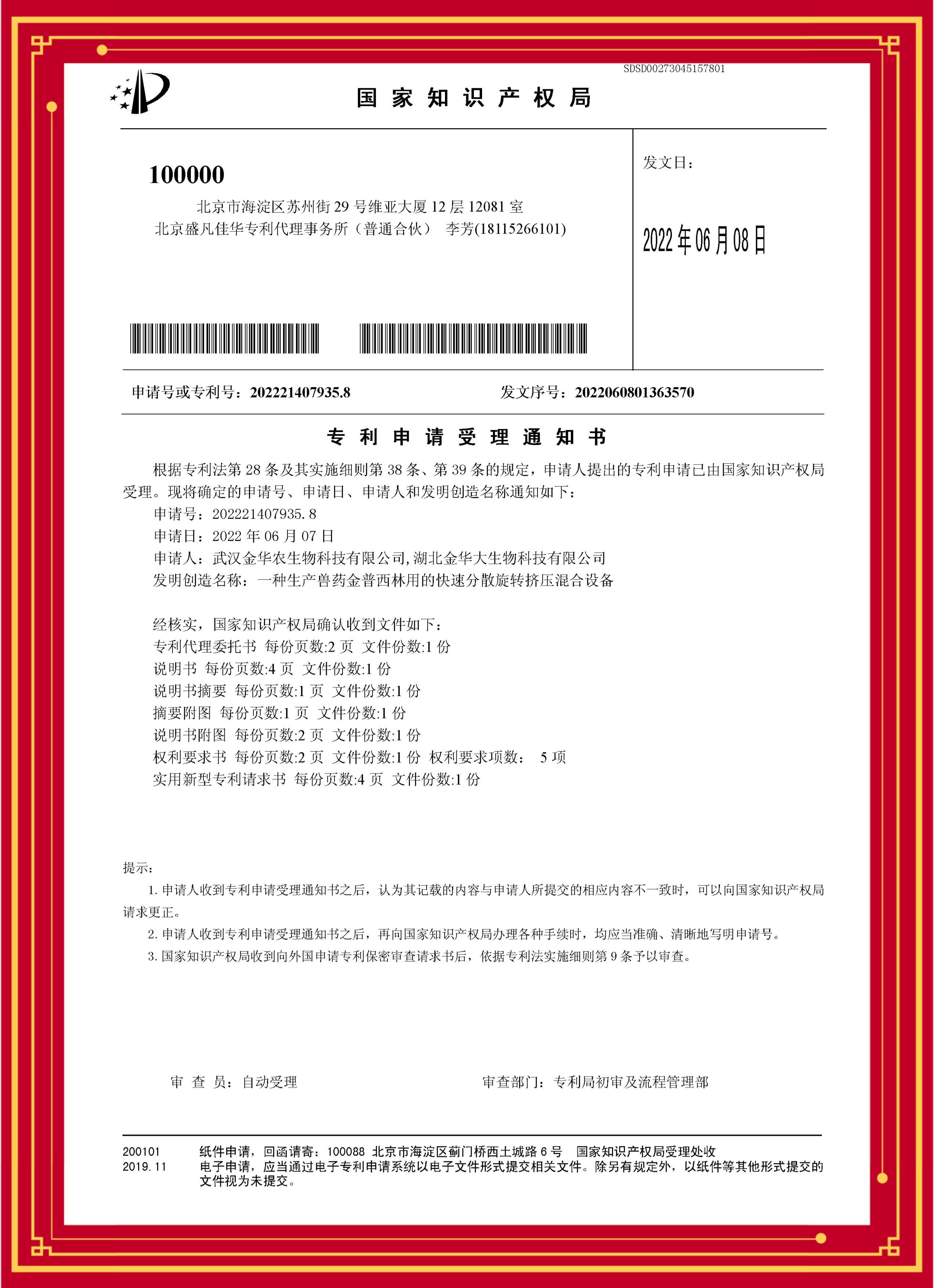 科技發(fā)明專利(金普西林):專利號(hào)—202221407935.8