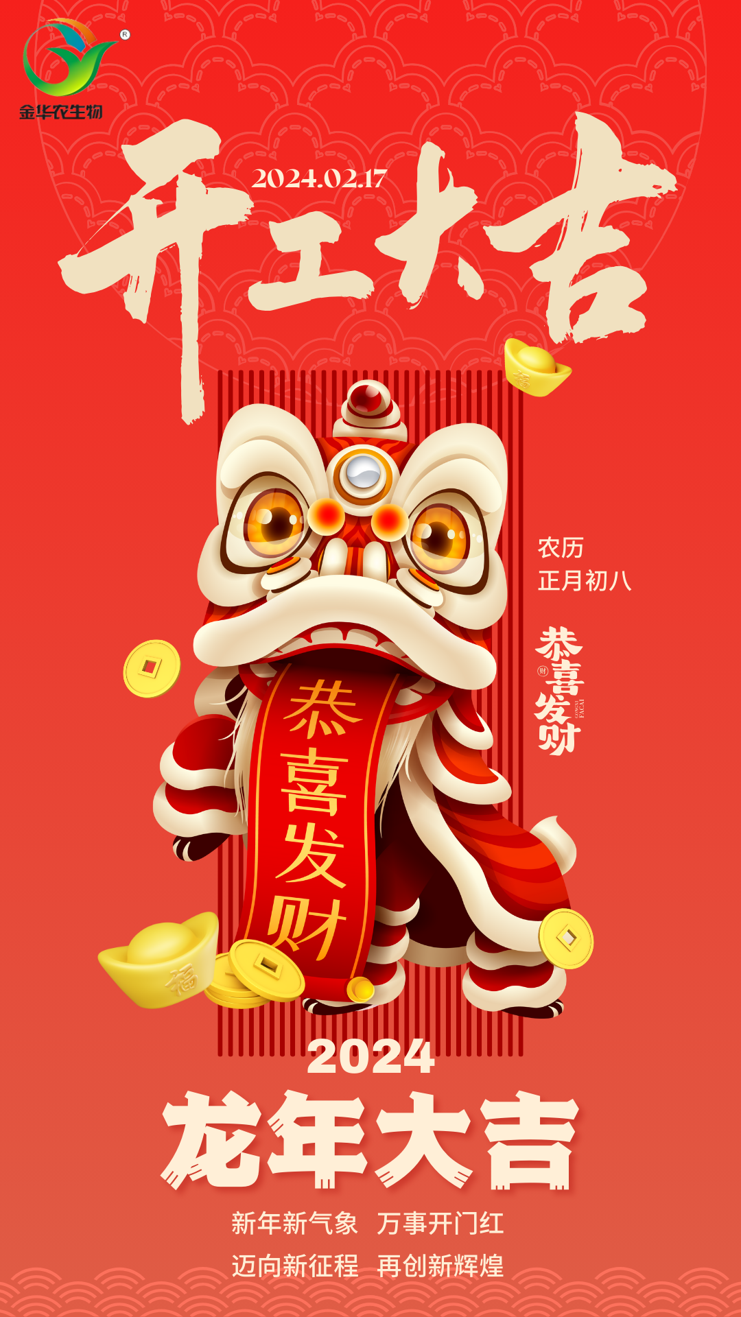 ? ? ? ?攬春盛,占鰲頭!武漢金華農(nóng)生物集團(tuán)吹響新年發(fā)展“集結(jié)號(hào)”,鞭炮齊鳴慶開工、爆竹聲聲送吉祥,2024龍行大運(yùn)再創(chuàng)輝煌!全體武漢金華農(nóng)同仁整裝再上陣,以昂揚(yáng)的斗志,務(wù)實(shí)的進(jìn)取,煥新再出發(fā)!繼續(xù)為人類健康、動(dòng)保事業(yè)提供專業(yè)、高效、精誠(chéng)的服務(wù)!?