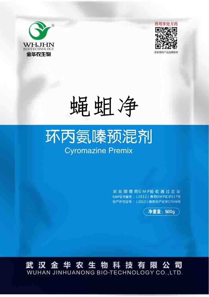 環(huán)丙氨嗪屬于殺蟲藥,可抑制雙翅目幼蟲的蛻皮,特別是幼蟲第1期蛻皮,使蠅蛆繁殖受阻,也可使蠅蚴不能蛻皮而死亡。雞內(nèi)服給藥,即使在糞便中含藥量極低也可徹底殺滅蠅蛆,當(dāng)飼料中濃度達(dá)1mg/kg時(shí)即能控制糞便中多數(shù)蠅蛆的發(fā)育,5mg/kg時(shí)足以控制各種蠅蛆,一般在用藥后6~24小時(shí)發(fā)揮藥效,作用可持續(xù)1~3周。