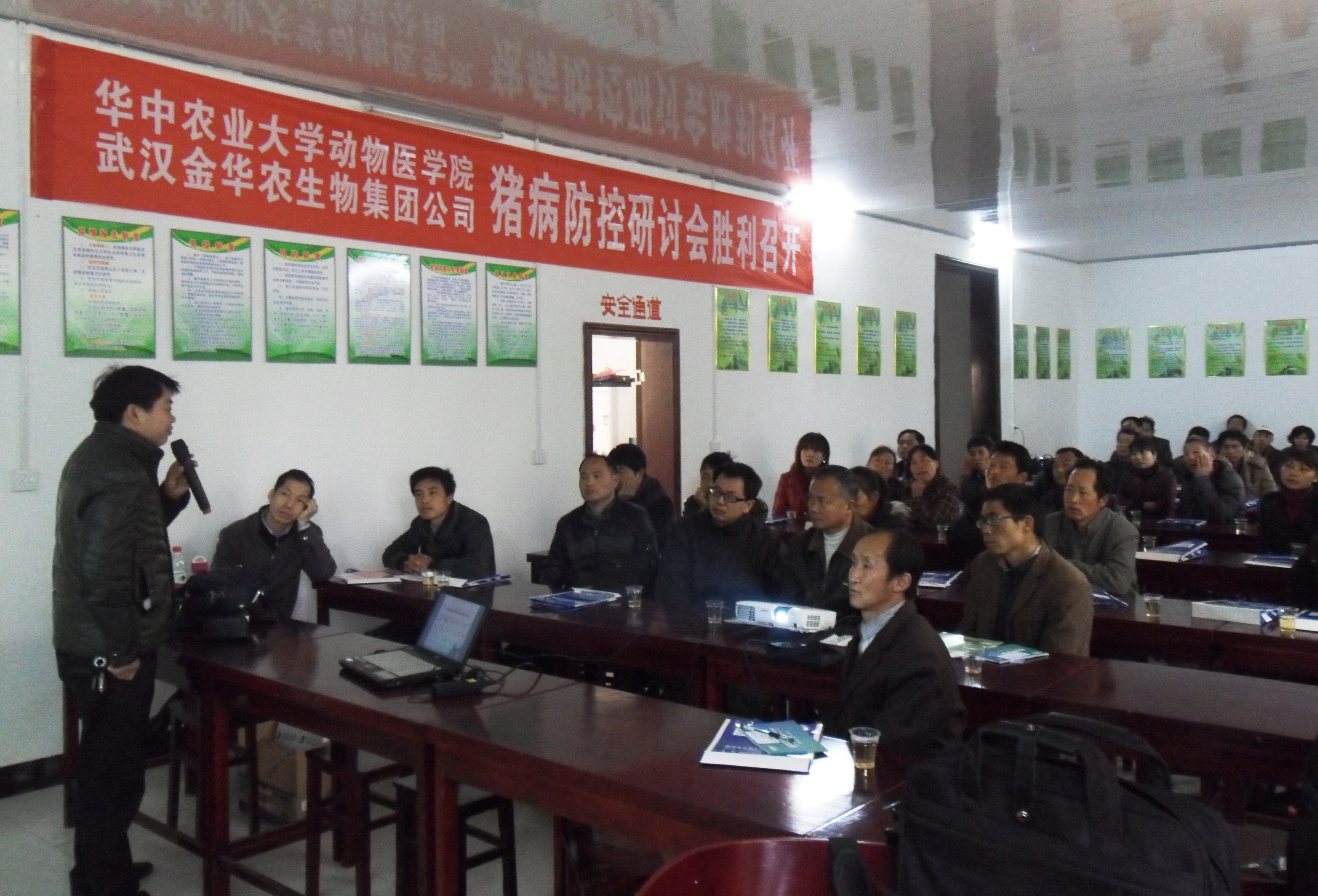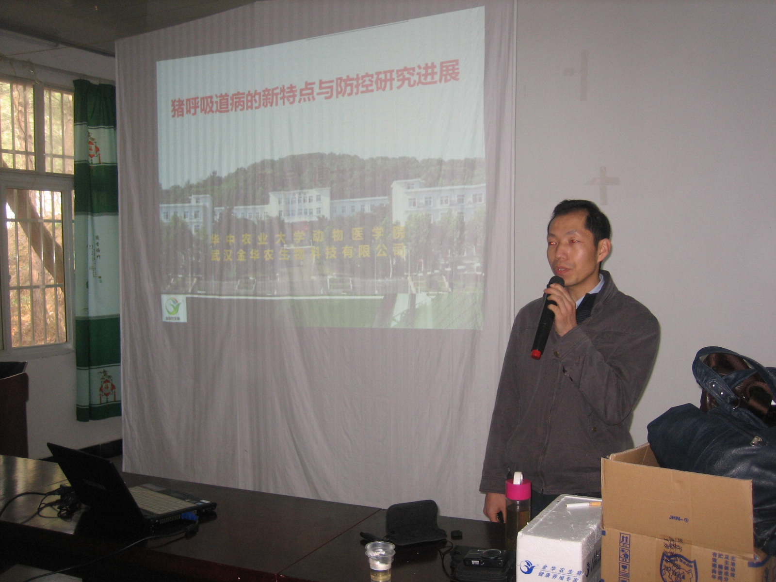 ?3.15消費者權(quán)益保護(hù)日之際,武漢金華農(nóng)生物公司走進(jìn)革命老區(qū)黃岡,召開了一場別開生面的“動保質(zhì)量行”研討會。華中農(nóng)業(yè)大學(xué)動物醫(yī)學(xué)院的專家、公司技術(shù)部老師,與來自黃岡養(yǎng)殖示范村的72家養(yǎng)殖場代表共一百余人參與了此次交流與討論。