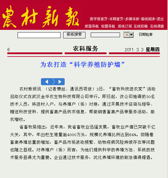 ??? 3月2日,我公司與湖北日報農(nóng)村部聯(lián)合開展“畜牧科技進農(nóng)家”活動,此活動揭牌儀式在武漢金華農(nóng)生物科技有限公司會議大廳成功舉行。