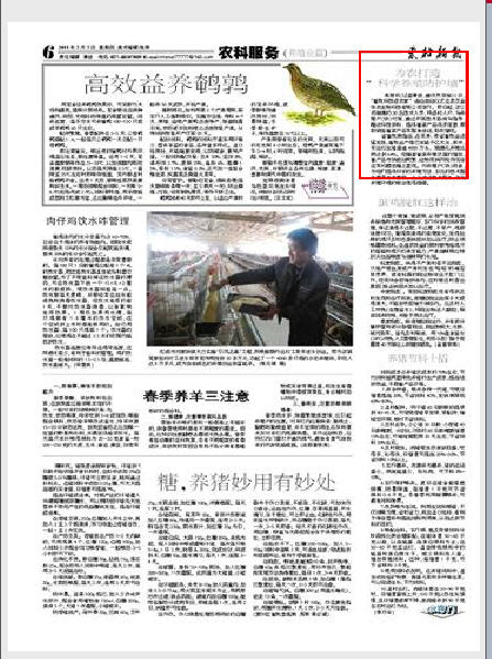 ??? 科學養(yǎng)殖致富,減少疫病發(fā)生,是廣大養(yǎng)殖戶最為關(guān)切的問題。為將農(nóng)業(yè)部、省畜牧局提出的“畜牧科技進農(nóng)家、結(jié)對幫扶”活動落到實處,金華農(nóng)生物公司今年將抽調(diào)30名技術(shù)人員,進村入戶,與養(yǎng)殖戶(養(yǎng)殖場)對接,通過開展技術(shù)咨詢與指導(dǎo)、贈送科技資料、提供畜禽產(chǎn)品供求信息、幫助銷售畜禽產(chǎn)品、開通畜牧疾病咨詢熱線等服務(wù)活動,助農(nóng)增收。