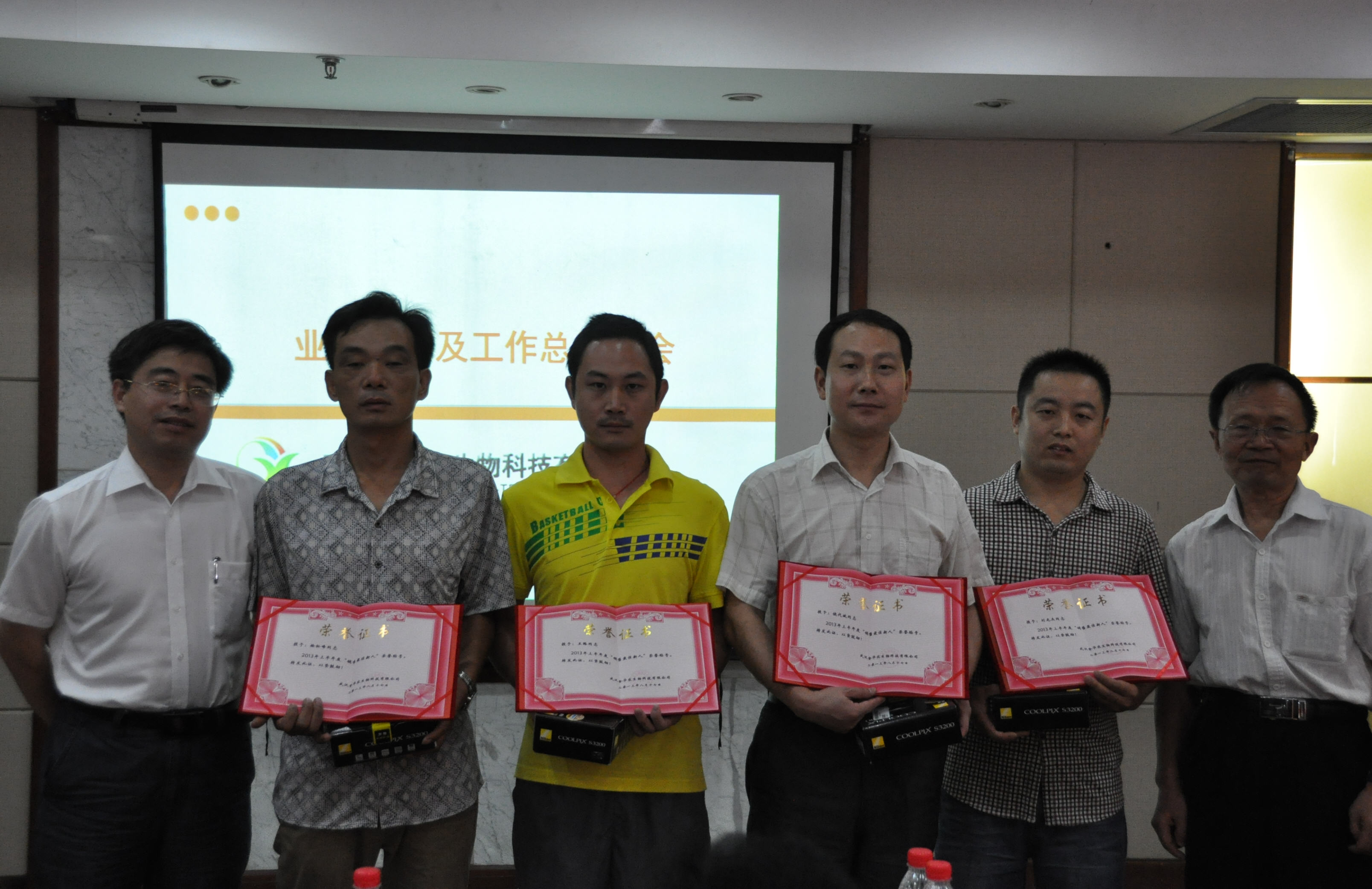公司領(lǐng)導(dǎo)富勝總經(jīng)理、肖后軍所長、李仁剛處長、姚寶安教授、齊德生教授,一起為銷售業(yè)績突出、表現(xiàn)優(yōu)秀的市場精英們頒發(fā)獎品和榮譽(yù)證書。