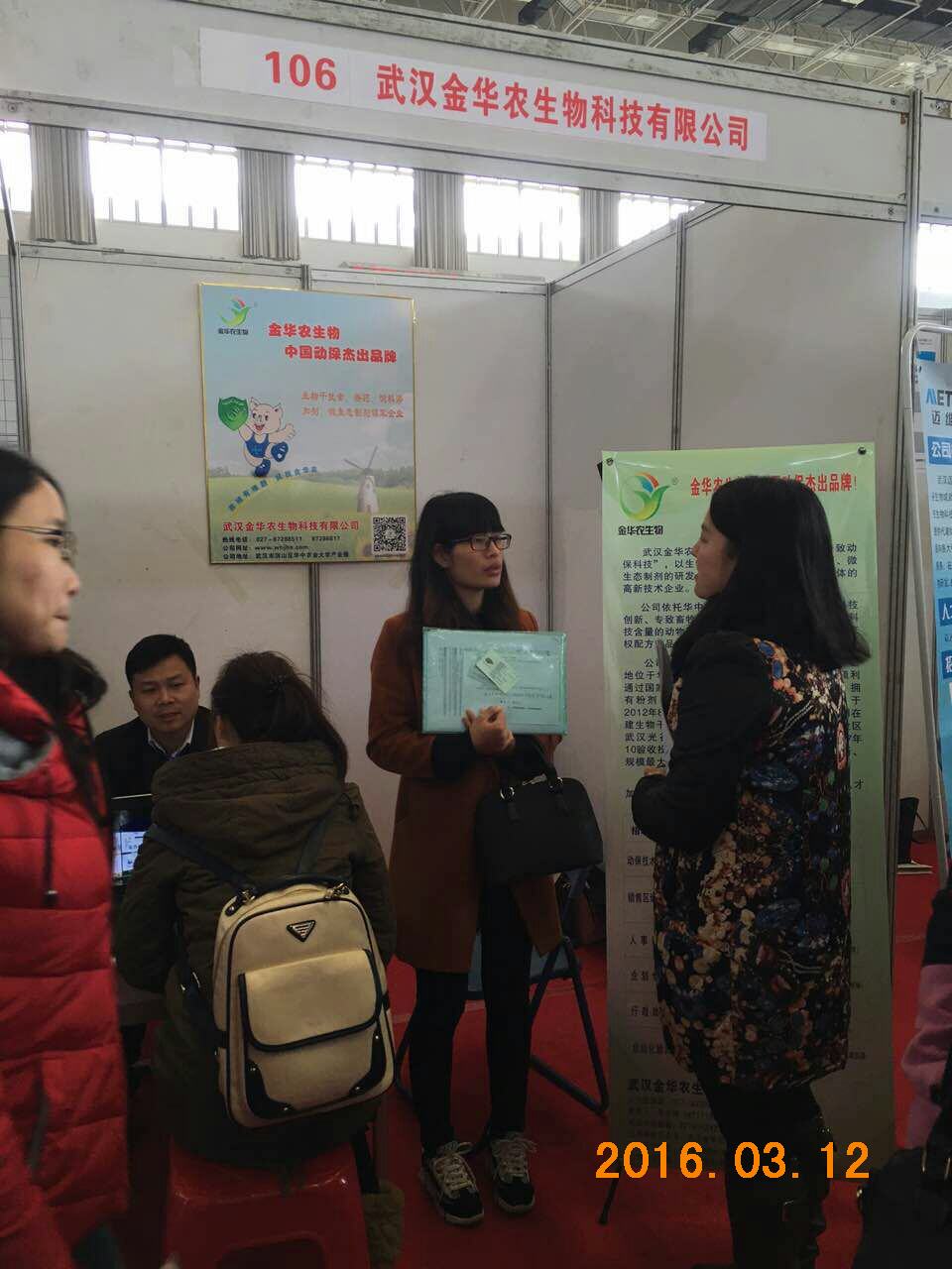 2016年3月12日,由湖北省高校畢業(yè)生就業(yè)指導(dǎo)服務(wù)中心和華中農(nóng)業(yè)大學(xué)共同舉辦的2016屆畢業(yè)生春季供需見(jiàn)面會(huì)在學(xué)校體育館舉行,5000余名高校學(xué)子參加了現(xiàn)場(chǎng)見(jiàn)面會(huì)。武漢金華農(nóng)生物應(yīng)邀參加,攜8大種類(lèi)共66個(gè)崗位高校攬才。