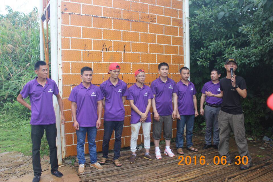 “金華農(nóng),加油!金華農(nóng),加油!金華農(nóng),必勝!金華農(nóng),必勝!……”踏著李奔、陳維利、劉傳忠、曹玉廣、唐友琦、王海峰、陳進調(diào)組成的第一層、第二層“人梯”,我們的團隊開始往上爬,風雨交加,墻面很滑,踩過兩道“人梯”,公司綜合辦主任黃凡第一個躍過墻面,回過頭來,他開始構(gòu)建“頂層”防線,一個、兩個、三個……越來越多的人在隊友的幫助下,成功翻越,我們的目標,是不落一人。