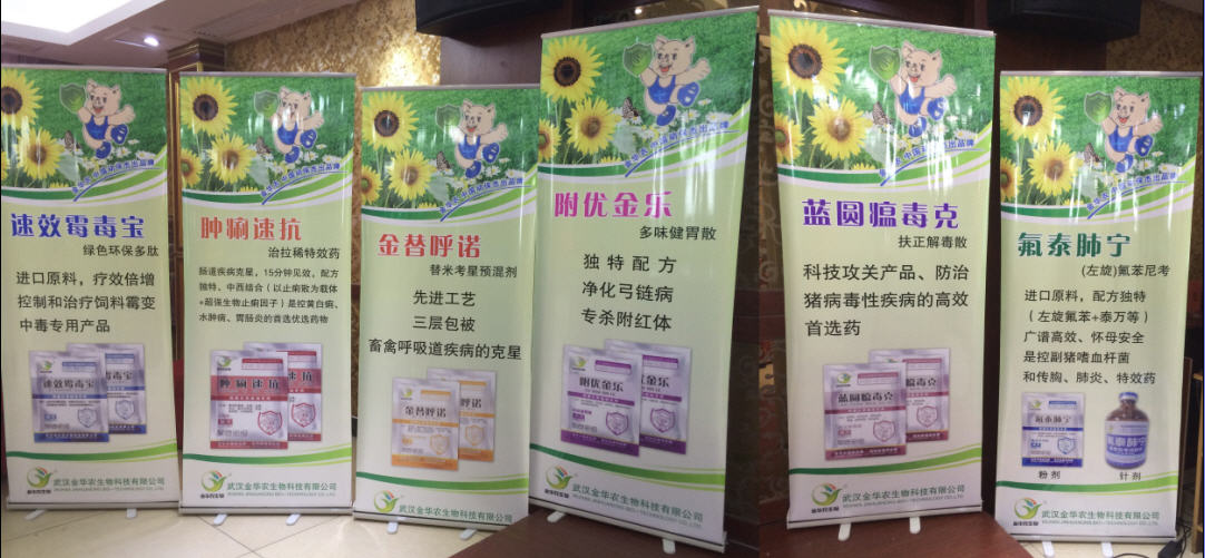 會議現場布置新穎,氣氛熱烈,反響很好,全新易拉寶閃亮呈現,會議現場訂貨共收現金10萬多元,預計后期拜訪總銷量達15-20萬!充分展示了武漢金華農獸藥優(yōu)異的產品質量和顯著的臨床療效,深受廣大養(yǎng)殖戶的歡迎、認可與喜愛!