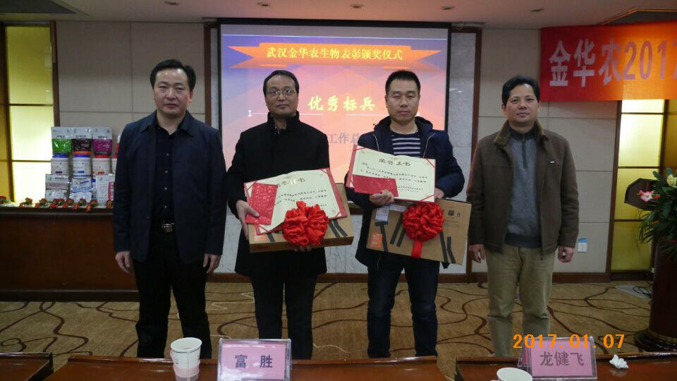 2017年1月7日,武漢金華農(nóng)公司秉承一貫“惜才、愛才、培養(yǎng)、拔高、貢獻”的人才理念,對全年市場優(yōu)秀工作者進行了大力表彰,各路市場精英迎來了屬于他們的肯定和榮耀!公司行政、市場近百人團隊分享了他們的喜悅與自豪,既為市場精英們歡呼鼓掌,也為自己的努力而叫好,新的一年,讓我們向行業(yè)標桿們看齊,勇往直前,爭當?shù)谝唬?/span>