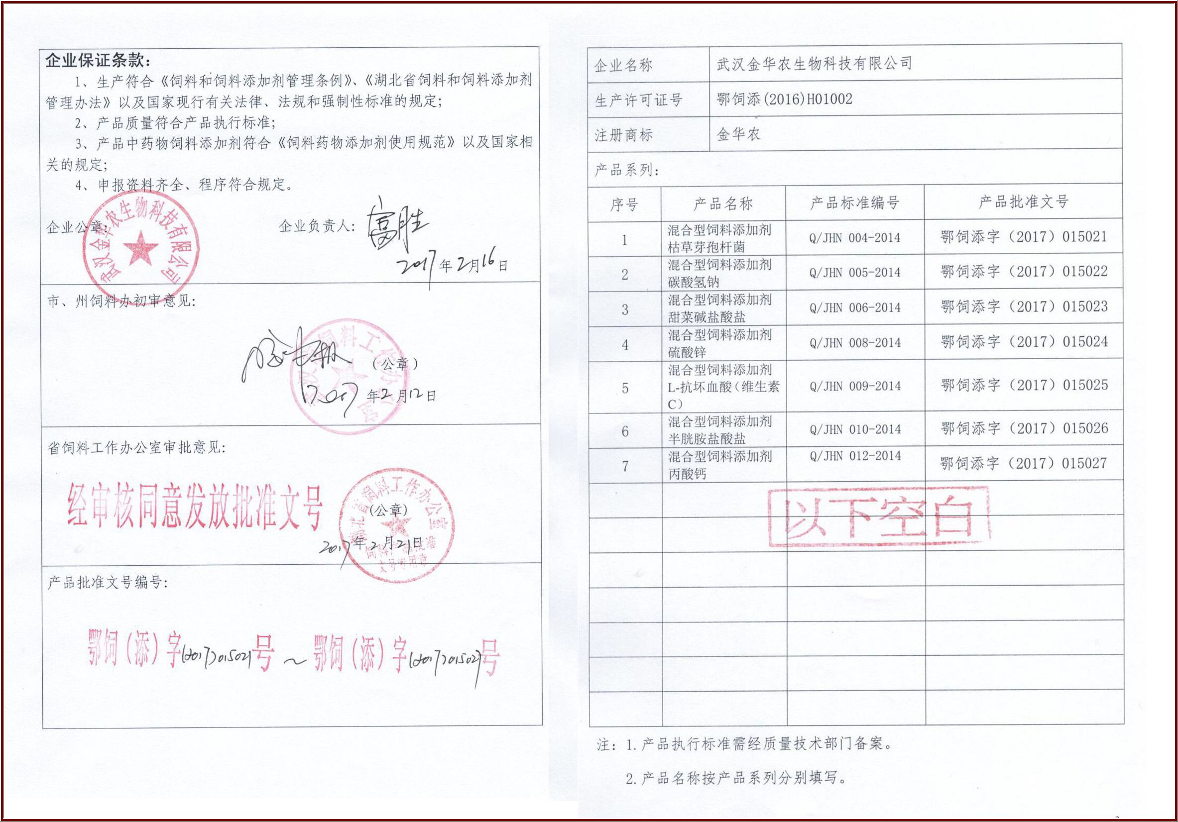 熱烈祝賀武漢金華農(nóng)“飼料添加劑”批號申報成功