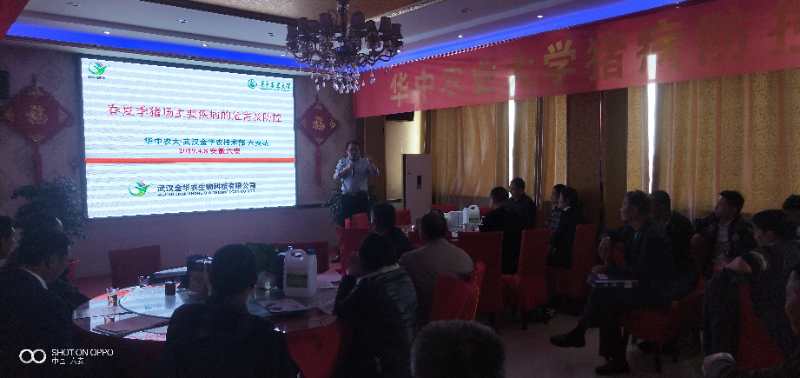 2019年4月8日,武漢金華農(nóng)生物集團(tuán)應(yīng)安徽省六安畜牧獸醫(yī)局的邀請(qǐng),在六安地區(qū)舉辦“非洲豬瘟的防控措施”暨“規(guī)?;i場(chǎng)常見病的預(yù)防與治療”豬病研討學(xué)習(xí)會(huì)議,此次會(huì)議非常成功,參加會(huì)議養(yǎng)殖場(chǎng)60家,養(yǎng)豬戶熱情十分高漲,學(xué)習(xí)積極踴躍,非瘟知識(shí)普及到位,豬病防控與治療宣傳深入,會(huì)議取得很好的效果。