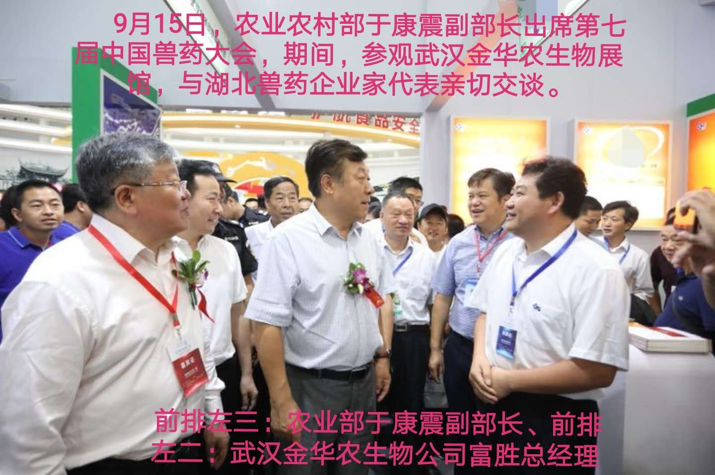 會議期間,于康震副部長參觀并視察了湖北省獸藥企業(yè)展館,親自來到武漢金華農(nóng)生物集團展館前了解企業(yè)發(fā)展情況,傾聽民聲民情,為企業(yè)解決疑難問題,關(guān)心湖北省獸藥企業(yè)的發(fā)展情況!仔細聆聽了以富勝總經(jīng)理為代表的湖北省獸藥企業(yè)家的工作匯報!并點頭微笑,肯定與贊美湖北省獸藥企業(yè)發(fā)展良好,為人民的食品安全作出貢獻!肯定武漢金華農(nóng)生物的發(fā)展迅速,科技創(chuàng)新突破,并鼓勵大干快上,為社會和行業(yè)作出應(yīng)有的貢獻,承擔應(yīng)有的社會責任!