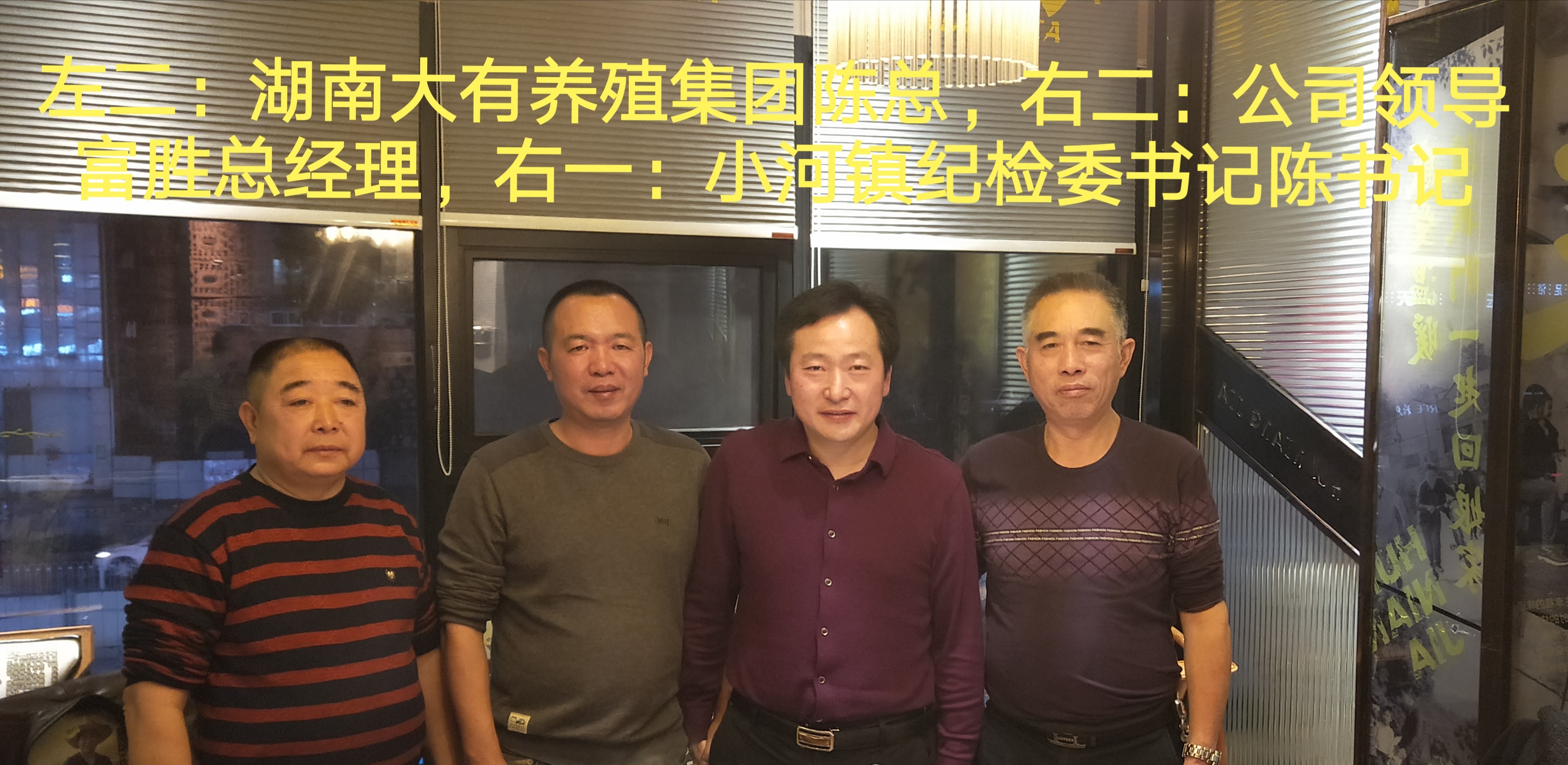 11月12日-15日,武漢金華農(nóng)生物集團公司富勝總裁帶隊赴湖南長沙、株洲、湘潭、衡陽開展為期3天的“市場調(diào)研”工作,并應(yīng)邀參觀考察湖南大有養(yǎng)殖集團“生豬養(yǎng)殖示范基地”,富總一行受到湖南大有養(yǎng)殖集團陳總、鎮(zhèn)紀(jì)委書記陳書記的熱情迎接與招待!雙方經(jīng)過友好商談,親切交流,深度互信,達成高度戰(zhàn)略共識,成功簽訂200萬元戰(zhàn)略合作協(xié)議!未來3年,累計合作目標(biāo)突破1000萬元!