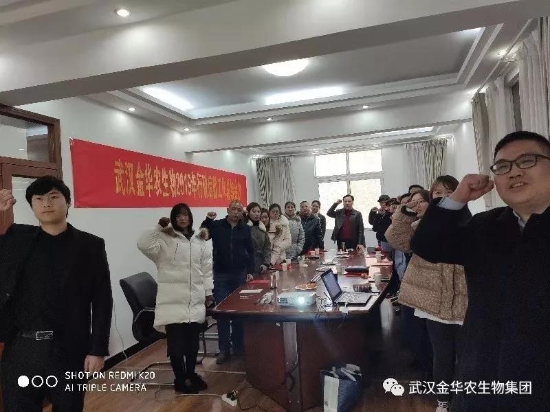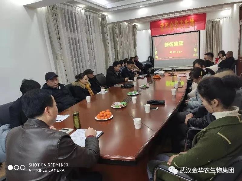 “2019,我們努力奔跑,勇敢逐夢;2020,我們將只爭朝夕,不負(fù)新時代——我們就是奮勇前行的武漢金華農(nóng)人!”1月17日,武漢金華農(nóng)生物公司2019年行政生產(chǎn)后勤工作總結(jié)暨2020年工作部署會議在華中農(nóng)業(yè)大學(xué)產(chǎn)業(yè)樓隆重召開,公司富勝董事長,公司常委領(lǐng)導(dǎo)干部、各部門負(fù)責(zé)人及員工代表參加會議,總結(jié)成績,展望未來,開啟新年新精彩。