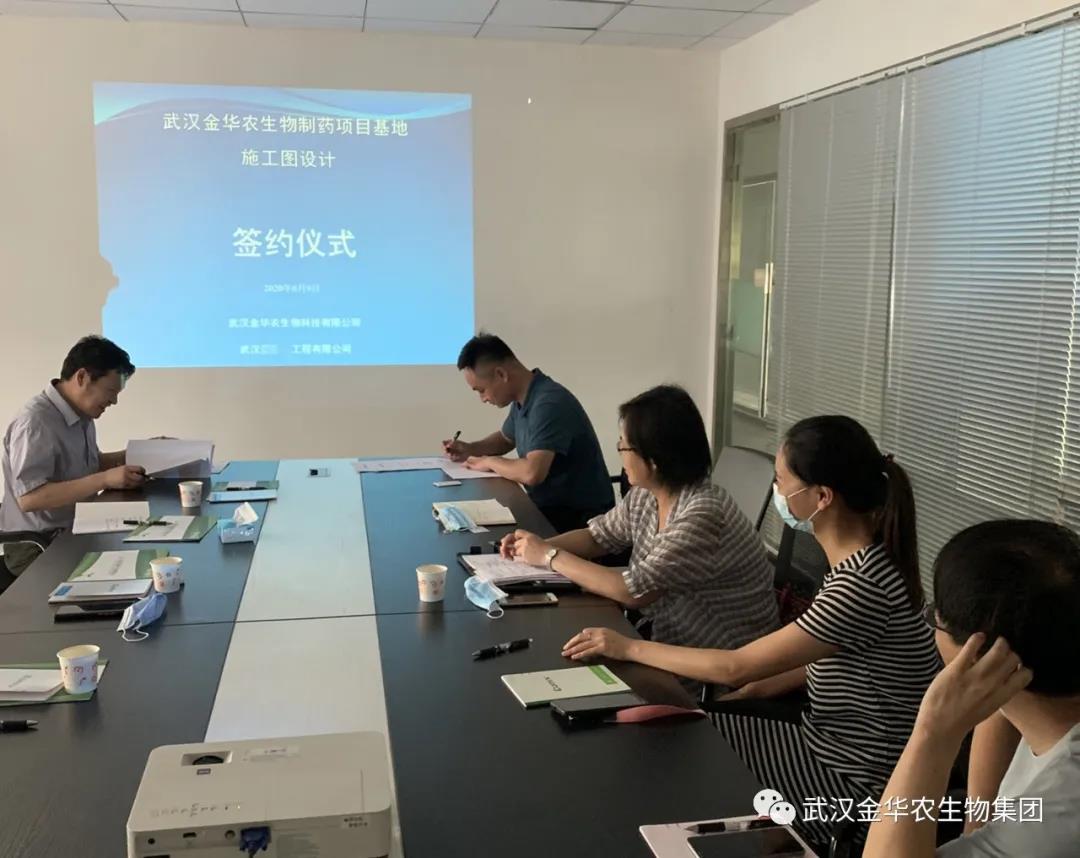 6月9日,武漢金華農(nóng)生物制藥投資3億元新項目基地施工設(shè)計簽約儀式在光谷生物城舉行。公司項目總監(jiān)黃凡、企劃部經(jīng)理趙方佳、合作方首席設(shè)計師團隊共同出席此次簽約儀式。